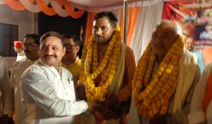 MARIYAHU. जौनपुर जिले के मड़ियाहूं नगर में स्थित श्री राम जानकी मंदिर प्रांगण में भारतीय सेना के सम्मान में भाजपा के कार्यकर्ताओं, पदाधिकारियों एवं नगरवासियो ने सेना के शौर्य पराक्रम को देखते हुए दो रिटायर्ड फौजियों का अंग वस्त्र एवं फूलों की माला को पहनाकर सम्मान कर सहभोज आयोजित कर फौजियों के साथ भोजन किया। यह सम्मान कार्यक्रम श्री राम जानकी मंदिर रामबाग धर्मशाला सेवा ट्रस्ट सदरगंज मड़ियाहूं द्वारा आयोजित किया गया था।