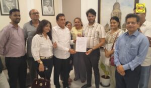 फोटो – सहायक मनपा आयुक्त नितीन सोना चंद्र प्रताप शुक्ला को ज्ञापन सौंपते हुए सोसायटी के चेयरमैन राजकुमार यादव। साथ में हैं सोसायटी के अन्य लोग।